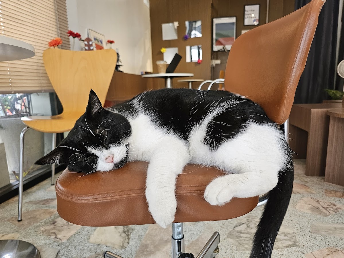 Step inside, and you’ll be enveloped in an ambiance that feels like a home away from home. The cafe’s decor is whimsical and inviting, with an eye-catching aesthetic that makes it a visually delightful experience. Not to mention the adorable resident feline, affectionately known as 'น้องจุ้นจ้าน,' who welcomes visitors from her perch on the chairs, adding to the cafe's charming character.